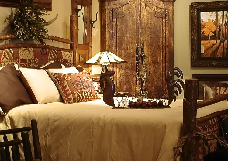 This hickory bed is made right here in the USA and simply has a look as limitless as the hundreds of rich fabric choices available. This bed is just as stunning when you mix the rustic hickory wood with elegant dark paisleys or, like this bed, a southwest almost “Aztec” pattern. If you like the hickory but want more wood, there are many different design choices. On the other hand, if this rustic look is not right for your home but you are drawn to the idea of a padded upholstered headboard there are so many possibilities!