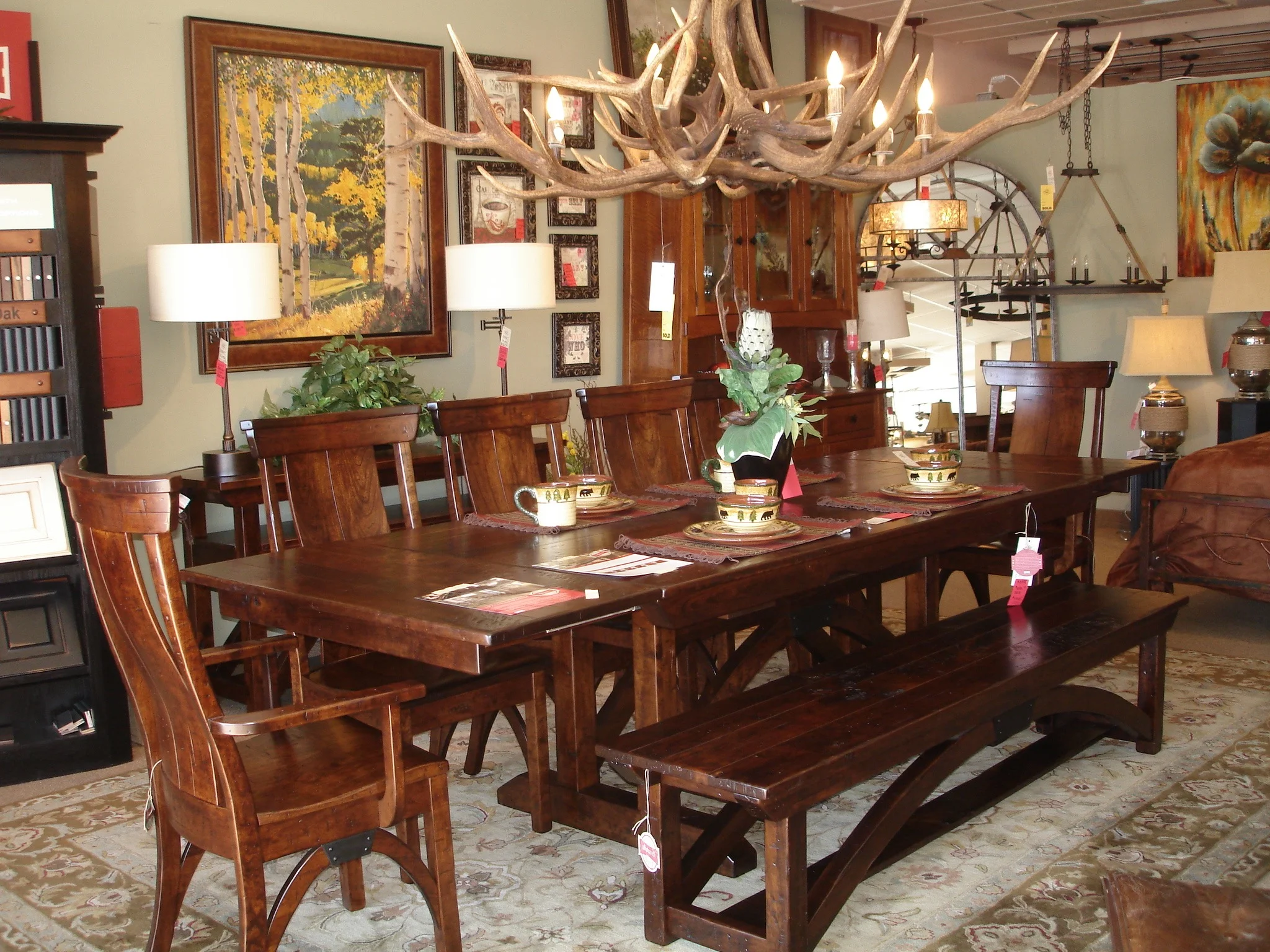 What a beautiful dining set this is for anyone living in a mountain community. We asked that this one be built out of solid cherry wood with a bourbon finish. It can have leaves, or not and comes in a variety of different sizes. For an extra rustic, yet elegant piece we've had the finish hand planed. This is a dining set that you will have to give away to your grandkids some day!