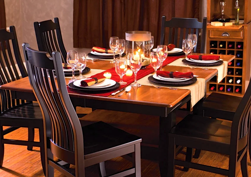 That's right, here at The Lite Company we love working with talented high-quality American craftspeople who can built whatever you need or whatever you can dream up. This beautiful two-tone square table allows everyone to participate in the conversation and laugh the night away while enjoying great food, but it is a unique shape! How often do you really see a square table that can seat six or eight? This square could have been built even larger, seating ten or twelve (which requires a big dining space). Just as easily, this table (and other styles) could have been built at the higher "gathering or counter" height.